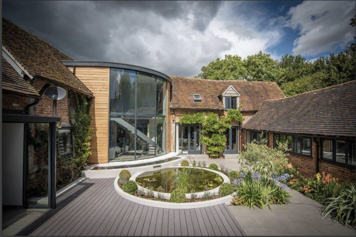 This country residence is a modern masterpiece. The architecturally designed barn conversion boasts five bedrooms, five bathrooms, four reception rooms, a luxury open plan kitchen opening out to a Mediterranean courtyard garden, stables, a double garage and nearly 8 acres of gardens and pasture land.
