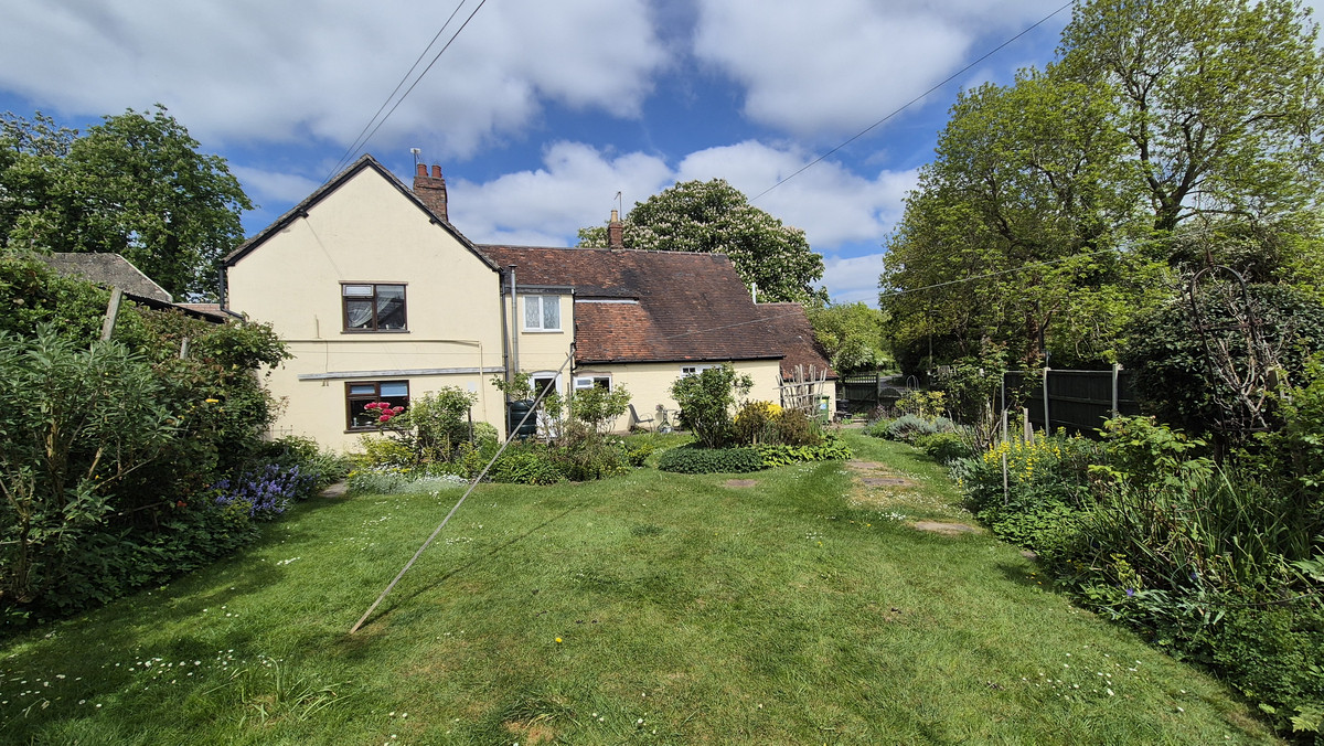 This beautiful garden displays several beds bursting with mature planting of flowers and shrubs. There is a patio/path that leads around the back of the property providing seating areas along the way, with stepping stones that meander through the sunny lawn. There is a shed, outdoor WC and double gates to the side.