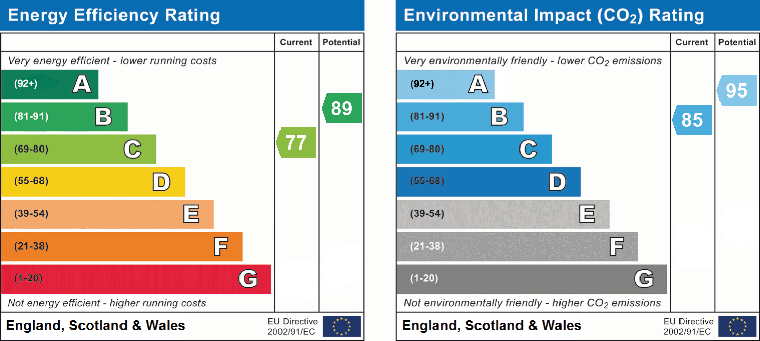 Solar Panels are owned and feeds a 5kw Battery and the Grid Boiler is being serviced on 10/12/25 Loft space is Boarded East facing Garden The property has a management fee of £360 per annum No Chain